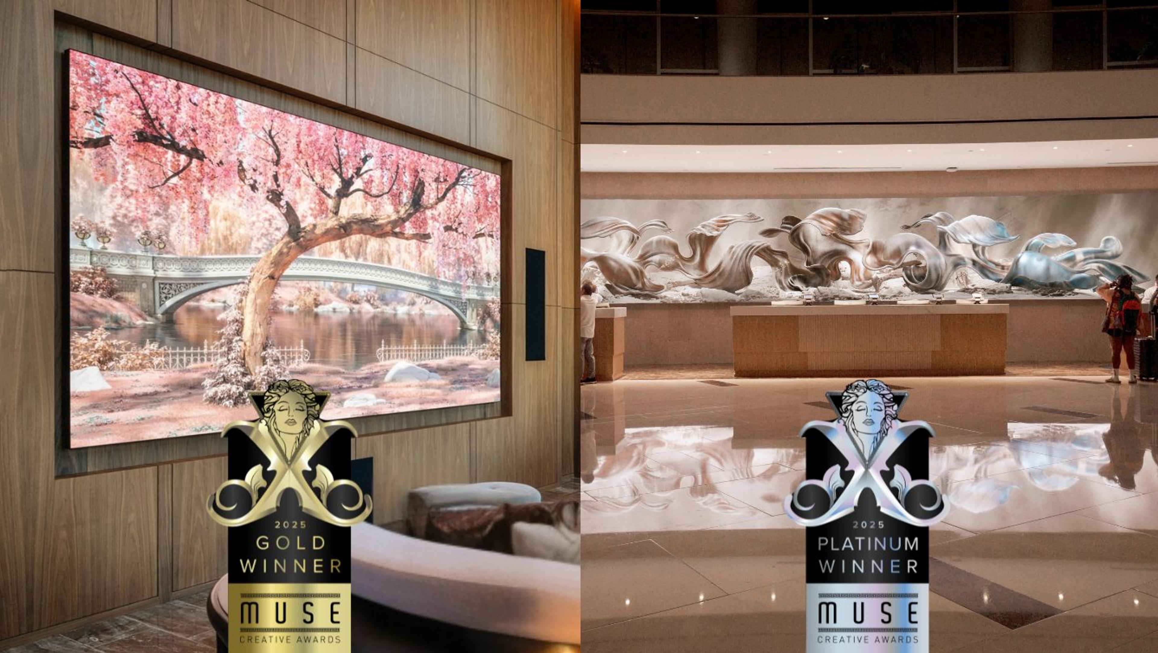Float4 earned top honors at the 2025 MUSE Awards for two standout projects. The Hyatt Regency Digital Art Collection received a Platinum MUSE Creative Award in the Experiential & Immersive – Immersive Brand Experience category, while our work for the Manhattan Suite at Park Hyatt New York took home a Gold MUSE Design Award in the Interior Design – Luxury category.
